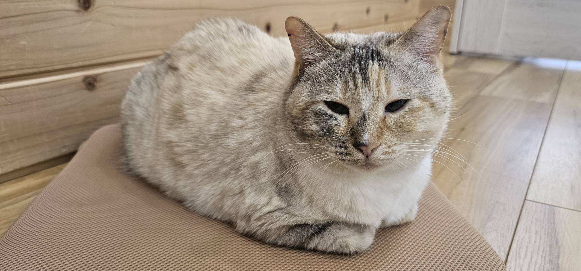 クッションの上で過ごしていました。写真撮るために、近寄ると起こしてしましました。